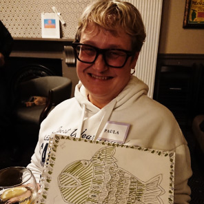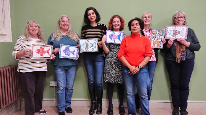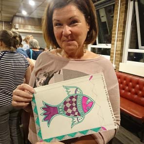 “Really enjoyed the session via Zoom – interesting, fun and strangely relaxing. My finished artwork turned out much better than I expected for a first try. Also enjoyed hearing about some of the history of the art form and background of the artist whilst having a go for myself.”